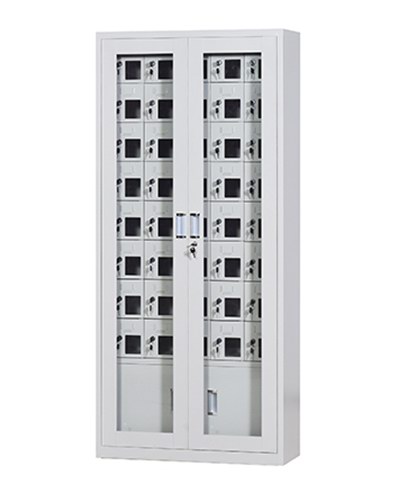 手機(jī)保密柜正面為對(duì)開金屬邊框玻璃大門,便于觀察柜內(nèi)情況,堅(jiān)固透亮,美觀大方。